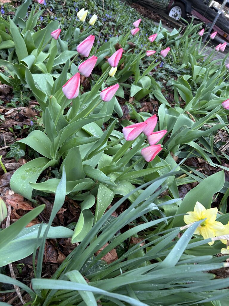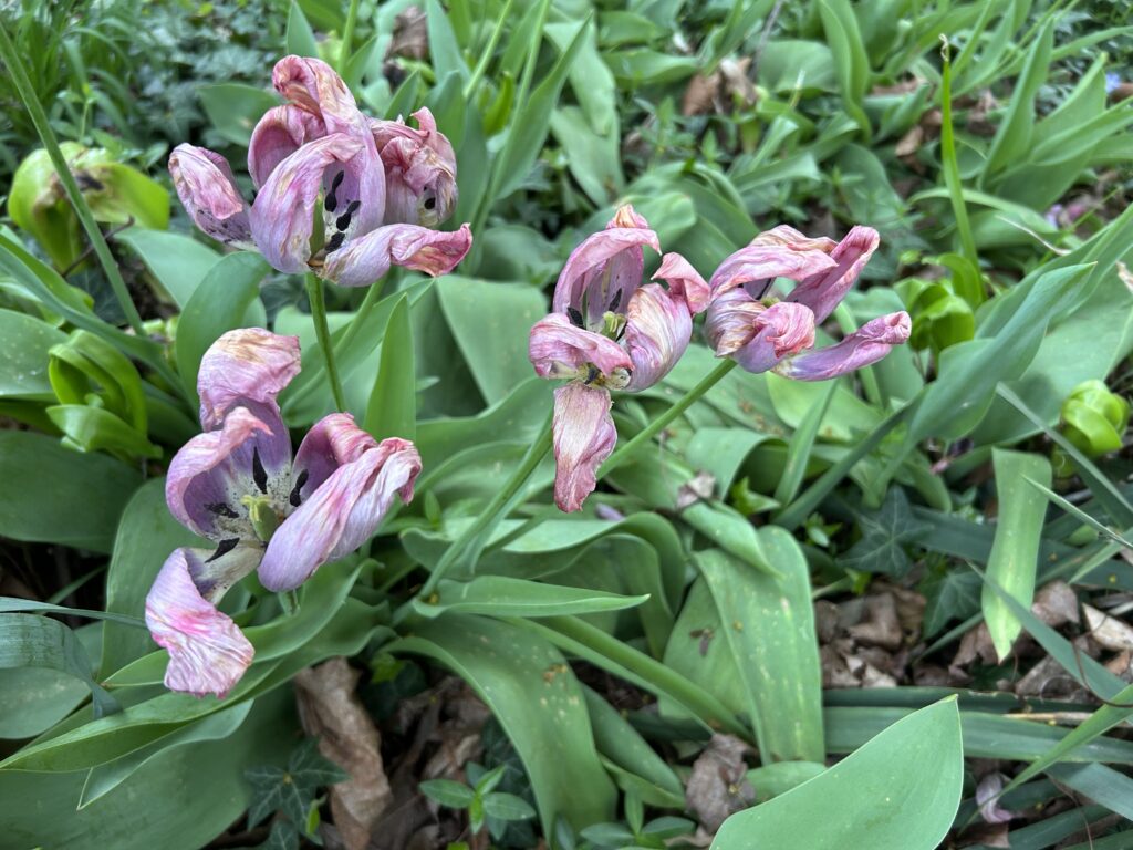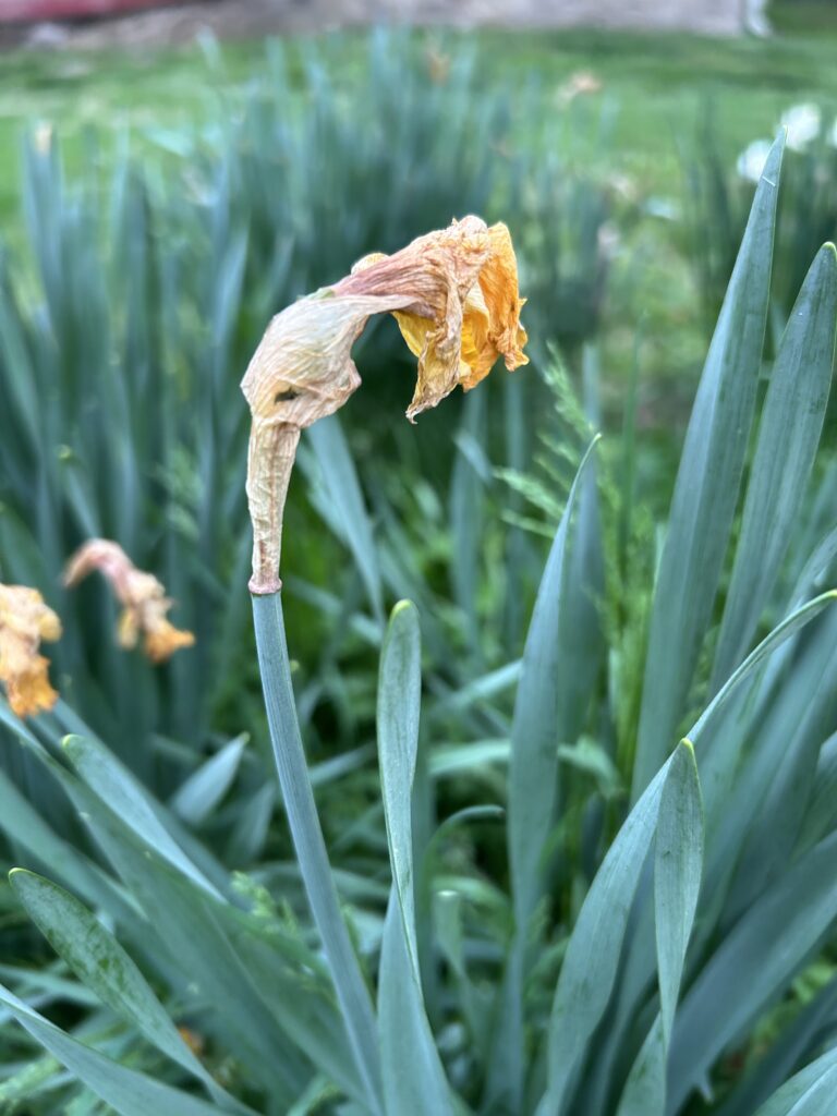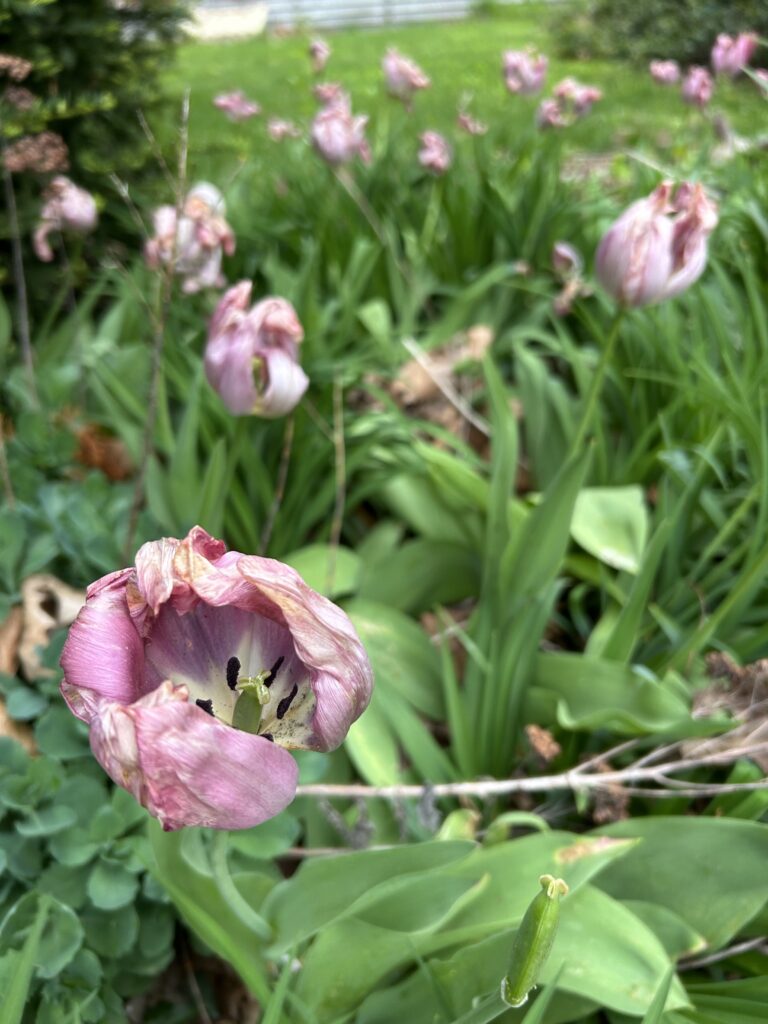 Many mornings I stopped at this bulb garden, admiring the tulips and daffodils. But what do I see when I look at what remains after the performance?